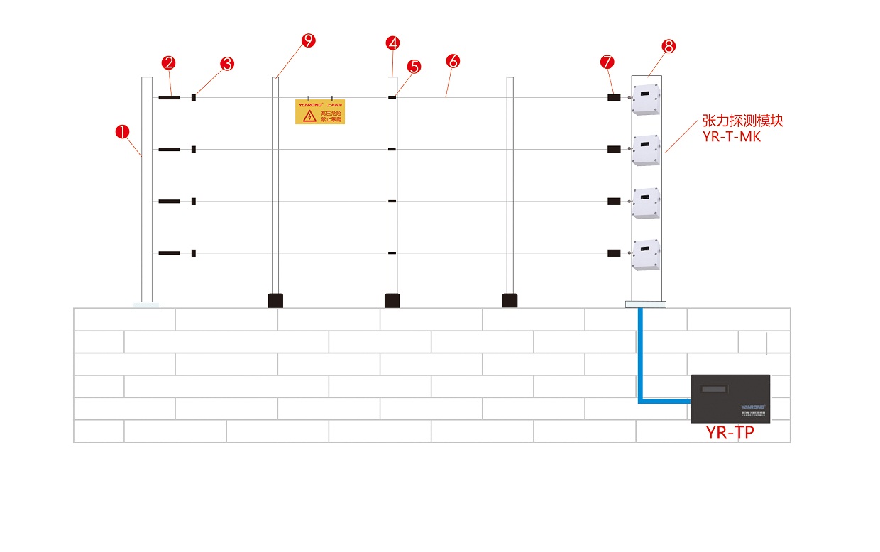 2.報(bào)警功能:張力線拉緊報(bào)警,張力線松弛報(bào)警,張力線剪斷報(bào)警,控制桿防拆報(bào)警,自檢故障報(bào)警,斷電報(bào)警;